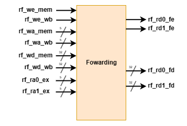 - rf_rd0_fe 与 rf_rd1_fe 为前递使能信号,为 1 代表前递发生。
