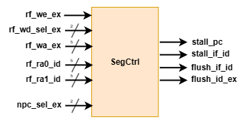 最后,为了解决 Load-Use 冒险与控制冒险,我们必须对段间寄存器进行控制。模块示意图如下: